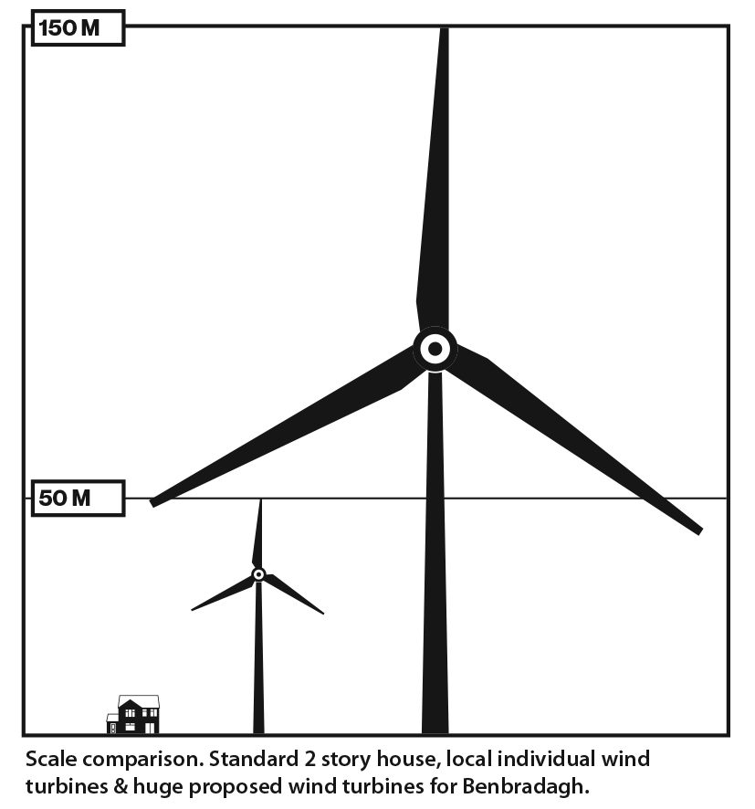 Benbradagh is set to be destroyed by the erection of a wind farm with turbines measuring a staggering 150m in height. These turbines will dwarf all others that already stand in the area and forever change the natural habitats and beauty of the mountain and surrounding landscape.